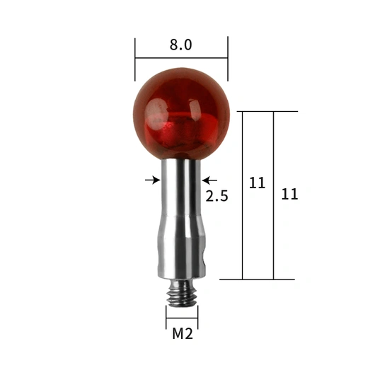 TH4158 M2 Ø8 mm ruby ball, stainless steel rod, length 11 mm