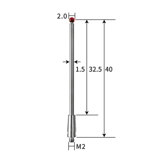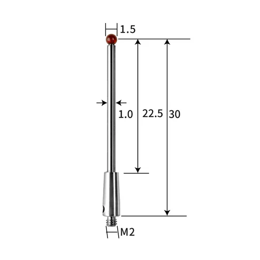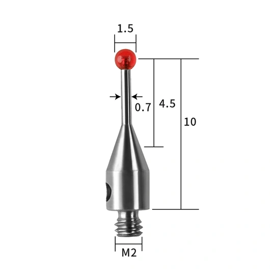 TH7802 M2 Ø1.5 mm ruby ball, stainless steel rod, length 10 mm