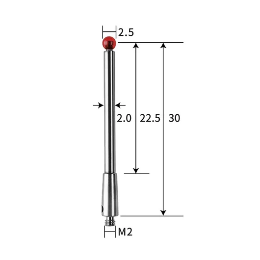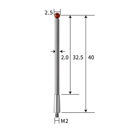 TH7804 M2 Ø2.5 mm ruby ball, stainless steel rod, length 20 mm