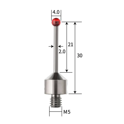 TH5219-M5-30T-04R M5 Ø4 mm ruby ball, tungsten carbide rod, length 30 mm