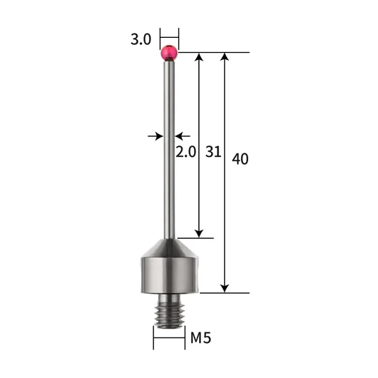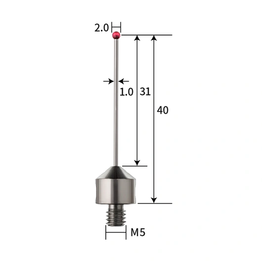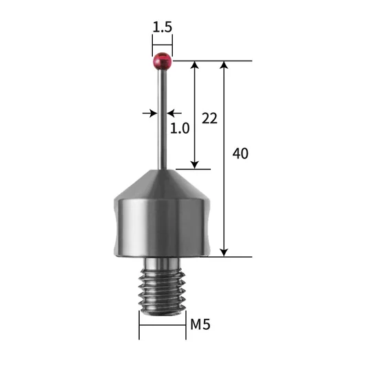 TH5222-M5-40T-02R M5 Ø2 mm ruby ball, tungsten carbide rod, length 40 mm