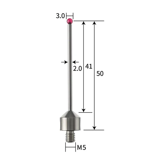 TH5231-M5-50T-02R M5 Ø2 mm ruby ball, tungsten carbide rod, length 50 mm