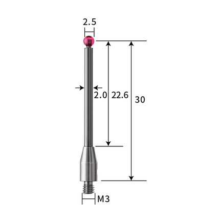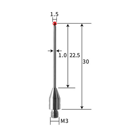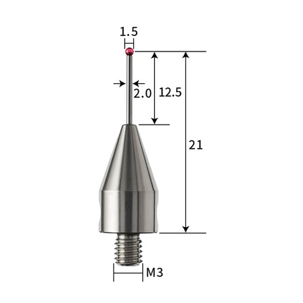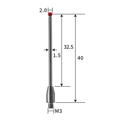 TH0058 M3 Ø3 mm ruby measuring ball, tungsten carbide rod, length 40 mm