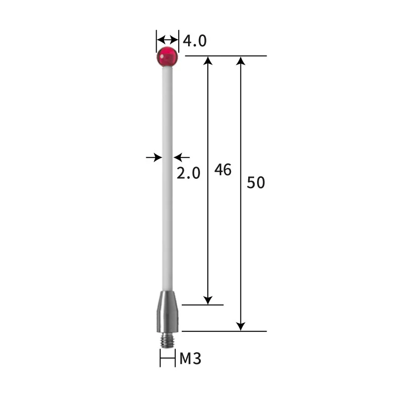 The straight stylus is suitable for detecting simple features that can directly contact the measured surface without obstruction. Ceramic measuring rods are lightweight but highly rigid, and have excellent collision protection characteristics. Ruby is recognized as the industry standard material for measuring needles and is currently one of the hardest materials available, suitable for most applications. Due to the presence of adhesive wear, it is not recommended to use a ruby probe when scanning aluminum workpieces.