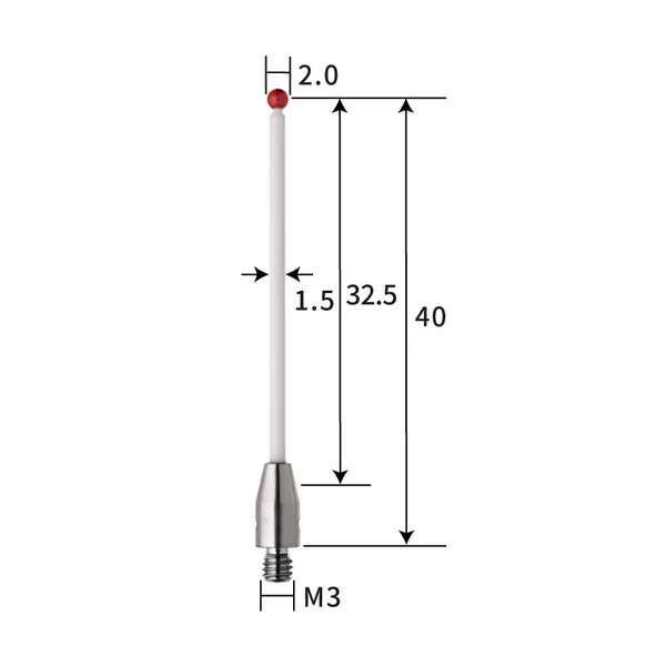 TH3646 M3 Ø2 mm ruby ball,ceramic rod, length 40 mm