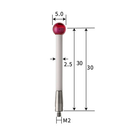 TH4779 M2 Ø5 mm ruby ball,ceramic rod, length 30 mm