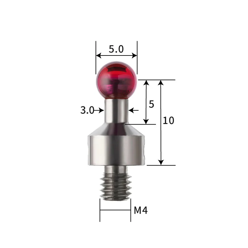 TH6350 M4 Ø5 mm ruby measuring ball, stainless steel measuring rod, length 10 mm