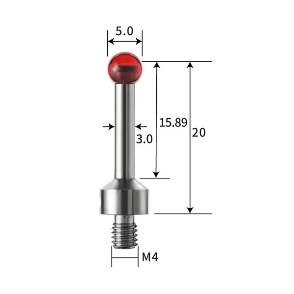 The straight stylus is suitable for detecting simple features that can directly contact the measured surface without obstruction. Stainless steel measuring rods have excellent rigidity and are very suitable for applications with low weight requirements. Ruby is recognized as the industry standard material for measuring needles and is currently one of the hardest materials available, suitable for most applications. Due to the presence of adhesive wear, it is not recommended to use a ruby probe when scanning aluminum workpieces.