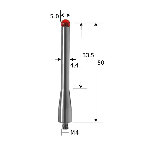 TH7521 M4 Ø5 mm ruby measuring ball, stainless steel measuring rod, length 50 mm