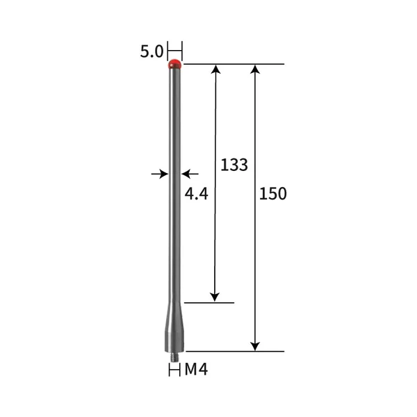 TH7523 M4 Ø5 mm ruby measuring ball, stainless steel measuring rod, length 150 mm