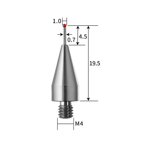 The straight stylus is suitable for detecting simple features that can directly contact the measured surface without obstruction. Stainless steel measuring rods have excellent rigidity and are very suitable for applications with low weight requirements. Ruby is recognized as the industry standard material for measuring needles and is currently one of the hardest materials available, suitable for most applications. Due to the presence of adhesive wear, it is not recommended to use a ruby probe when scanning aluminum workpieces.