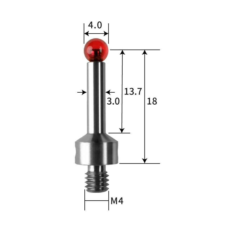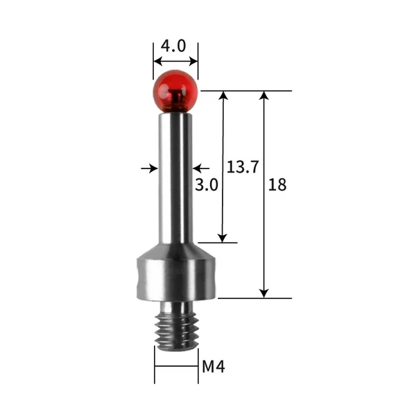 TH7551 M4 Ø4 mm ruby measuring ball, stainless steel measuring rod, length 18 mm